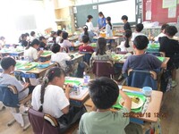 久しぶりに涼しい1日でした。4年生の体育は三角ハンドボールです。ゴールが3辺のどの角度からでもゴールを狙えます。パスをうまく回し狙いすましてシュート!ナイスゴールです。さて、毎月19日は「食育の日」です。今日のメニューは広島県の郷土料理です。もぶりご飯は、いろいろな具材が入った混ぜご飯で、広島弁で「混ぜる」ことを「もぶる」と言います。がんすは、魚のすり身で作ったフライです。体育を終えた4年生がもりもりと食べていておいしそうです。6年生の理科の様子です。「大地のつくりと変化」の学習、ボーリング試料をじっくりと見て、土の特徴を観察していました。放課後に、校庭が何やらにぎやかだな…と思っていたら鬼ごっこ?合唱部のようです。先生も走って楽しそうです。