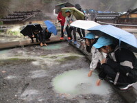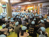1日目の夜は「ふくべ細工つくり」です。ユウガオからかんぴょうをとった後の実を乾燥させて使います。いろいろな形の中から自分のインスピレーションにあったものを選び、思い思いのデザインを描いていきます。いいお土産ができましたね。さて、2日目です。外は…小雨です。1日ずっと降ったりやんだりの天候でした。早朝6時、源泉めぐりの散歩です。触ってみると「熱い!」地面からお湯がわくという不思議なものを見ることができました。朝食後、いよいよ旅館ともお別れです。竜頭の滝を散策し、中禅寺湖の遊覧船に乗ります。雨が降っていましたが、子どもたちは果敢にデッキにあがります。初めて船に乗った子もいたようです。最後の見学場所は「華厳の滝」です。晴れていればもちろんいいのですが、雨は雨で荘厳さが増します。「すごい…」子どもたちにもこの迫力は伝わったようです。この頃になると、「帰りたくないな…」「もう終わりか…」日光との別れがさみしくなってきているようです。昼食を食べ、お土産を買って帰りのバスに乗り込みます。帰りはもちろん…ぐっすりです。この2日間、6年生の成長をたくさん感じることができました。卒業まであと5か月。悔いのないよう過ごしてほしいです。今日はゆっくりやすんでください。保護者の皆様、修学旅行の準備等、ご協力をいただきありがとうございました。今後ともよろしくお願いします。