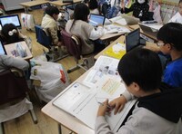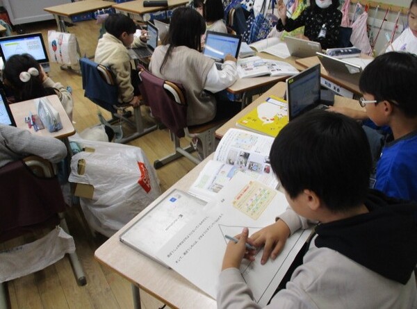 今日は3年生の学習の様子です。社会の学習では学校内を見回っていました。職員室では先生が探知機などについて説明しています。「こういうものがあると知らなかったでしょ?」「はい!」いろいろと見て学んでほしいです。3年生の別のクラスでは、社会・算数それぞれで「個別最適で協働的な学び」を実践しています。教員が黒板の前で一つ一つ教える形ではなく、課題に対して自分一人で進めるのか、友達と一緒に協働的に進めるかを選択し、課題に向けて進めていきます。先生はどちらかというと支援者になります。高学年ではだいぶ慣れてきていますが、3年生もだいぶ身についてきました。社会のクラスでは、思考ツールとして「ピラミッドチャート」を活用していました。たくさんの情報を整理し、自分の考えを明確にしやすくするためのものです。先生方も授業の進め方の研究を頑張っています!