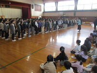 舘岩自然の家とRB大宮アルディージャは共同企画として「オレンジひまわりプロジェクト」を行っています。自然への関心を高め、さいたま市に緑を広げていくことを目指しています。5年生は今月の舘岩自然の教室の最終日、緑の体験活動の中で、舘岩で育ったひまわりの種をはがす作業を行いました。この種が、さいたま市すべての小学校へ届きます。また、RB大宮アルディージャの試合会場で来場者にも配布される予定です。さいたま市を代表してアルディージャと縁が深い本校で種の贈呈式が行われました。5年生の代表2名が、舘岩自然の家の館長さんとマスコットのアルディくんからひまわりの種を受け取りました。来年春に本校でも種を植える予定です。5年生は朝に音楽朝会がありました。今月の歌「小さな勇気」をきれいなハーモニーで歌いました。