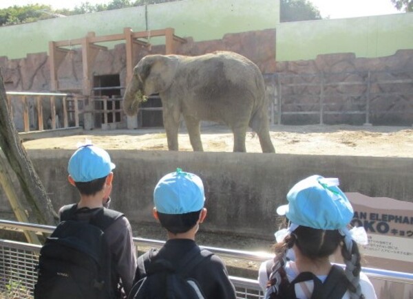今日は1年生の遠足です。朝の子どもたちの表情から本当に楽しみにしていることが伝わります。天気も晴れていてちょうどいい気温です。無事に東武動物公園に到着し、早速見学です。大きなゾウやキリン、ホワイトタイガーなどを見ると「わあっ!」と歓声があがります。ライオンは地下に入りまぢかに見ることもできます。ふれあい体験では、うさぎとモルモットに触りました。ふわふわした手ざわりと温かさ。思わず「かわいい…」とつぶやく子も。今日の見学で意外な人気だったのが「クモザル」と「コウモリ」でしょうか。クモザルは長い手足と尻尾を使って空中をゆうゆうと移動する姿に多くの子どもたちが引き付けられていました。コウモリはおそらく初めて見る子が多かったのでしょうか。そういえば、最近はあまり見かけなくなりましたね。その暗室のような場所に跳び回る姿に驚いていました。無事に学校に到着すると「楽しかった!」とうれしい声。今日はゆっくり休んでください。