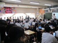 今日は「つぼみの日」です。「つながる・ぼくたち わたしたちの・みらい」でつぼみの日。さいたま市の6年生が中学校へ赴き、授業や部活動の様子を見学します。担当の先生に導かれて、授業の様子を見学します。やはり授業の難しさには驚いていたようですね。また、「イカの解剖」という珍しい内容の理科の授業も興味深く見ていました。その後、武道場で生徒会の子どもたちから学校の特徴について説明がありました。指扇北小学校を卒業した子がたくましい姿で説明しているのもうれしかったですね。最後は部活動見学です。運動部や文化部など、生徒が生き生きと活動している姿に期待が高まったようです。指扇中学校の皆様、今日はどうもありがとうございました。