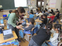11月11日(火) 1年生は「スタンプぺったん」を楽しんでいます。タブレットも少しずつ練習中です。