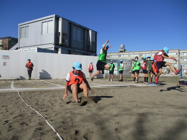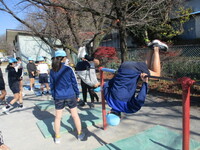12月になりました。朝は吐く息に白いものが見えますが、日中は暖かな1日です。校庭からにぎやかな声が響いてきたので体育の見学にいきました。5年生は走り幅跳びです。工事の関係で走る距離が短いですが、踏切までのリズム感を大切にしながら高くジャンプしています。1年生はまずは縄跳び。私が見に行くと「私のを見て」といった感じで集まってきます。あや跳び、交差跳び、中には2重跳びを披露する強者も。その後はボール遊びです。2人組の体の間にボールを挟んで動きます。息が合わないとボールがいろいろな所に飛んでいきます。それがまた面白いようで「キャッキャ」と笑います。とても楽しそうです。6年生は、たまご回りに挑戦中です。前後とも回る子は注目のまとですね。このHPも9万アクセスとなりました。本当にたくさんの皆さんに見ていただき感謝です。