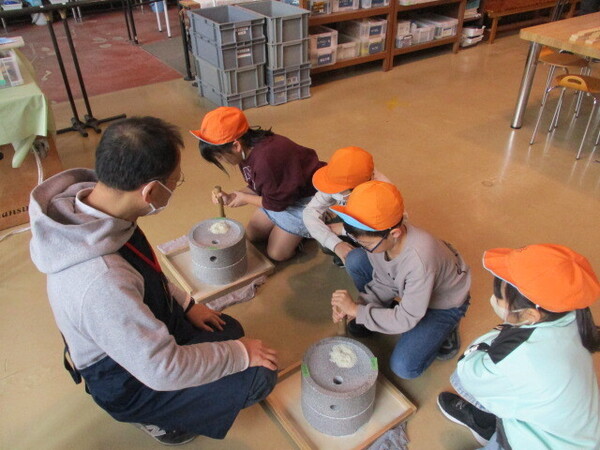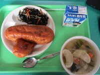 インフルエンザの流行が少しおさまってきました。先月、学級閉鎖で3年生の社会科見学に行けなかった学級が埼玉県歴史と民族の博物館に行きました。バスを借りて…ではなくて、バスと電車を乗り継いて向かいます。大宮駅はたくさんの人に溢れ、その中を歩きます。「貨物列車だ!」クラスのみんなと電車に乗ると、いつもとは違う気分ですね。無事に到着し、昔の道具を見学したり、火起こし体験や石打体験、昔の道具体験などを楽しむことができました。帰るころには「おなかすいた~」たくさん歩きましたからね。今日は揚げパンです。たくさん食べてください。保護者の皆様にもボランティアで一緒に引率をしてくれました。本当にありがとうございました。