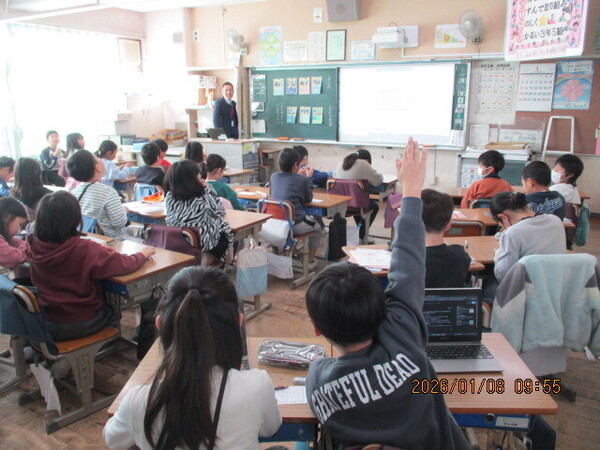 3学期が始まりました。久しぶりに登校してくる子どもたち。1年の初め、新たな気持ちで頑張ろうという意欲にあふれていました。始業式では校長先生から、大切なことを当たり前にできるようになる1年にすること、自分の目標をしっかりともつことの話がありました。久しぶりの教室、各学級では今年のめあてを考えたり、新しい係を決めたりしています。もう早速明日からは給食が始まり授業もどんどんスタートしていきます。3学期は52日、6年生は50日です。次の学年に自信をもって進んでいけるような3学期になるといいですね。保護者・地域の皆様、今年もどうぞよろしくお願いします。