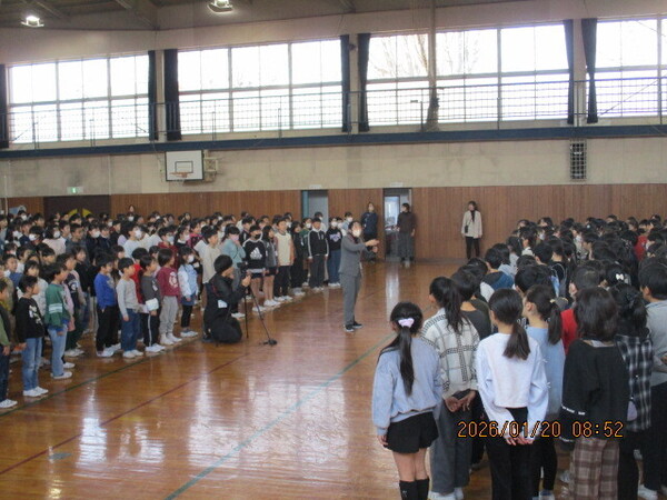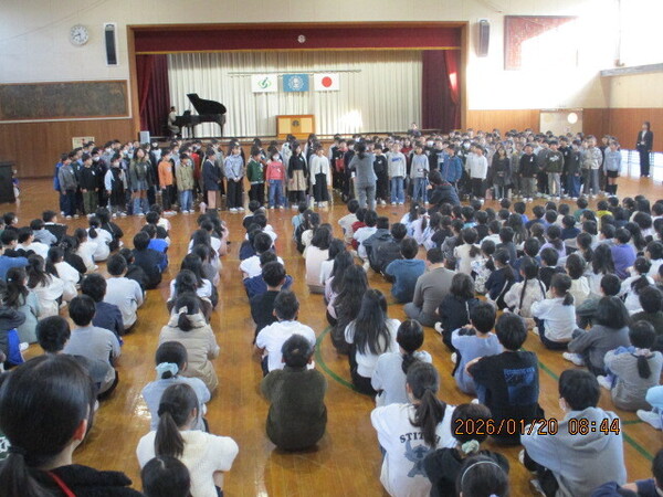 1月20日(火) 今日の音楽朝会は4年生の出番です。「大切なもの」を歌いました。