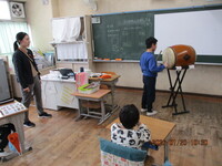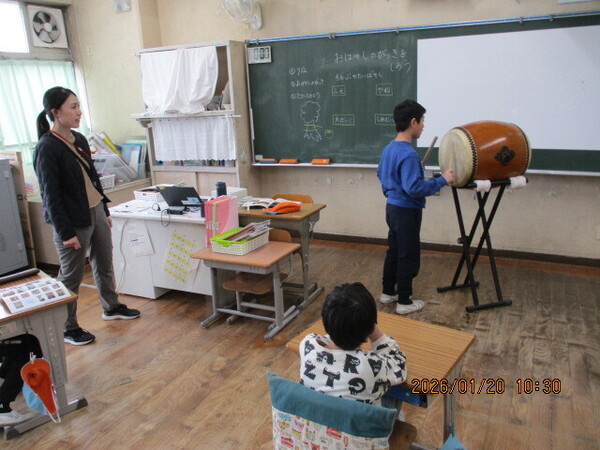 今日は音楽朝会、4年生の出番です。「大切なもの」を歌いました。2部合唱で歌詞の雰囲気に合わせ、初めは穏やかに、そしてサビに向かってよりダイナミックに歌いました。最後は2・4・6・にじいろのみんなで歌詞をかみしめながら合唱しました。2校時あたりでしょうか。夏を思い出す音が聞えてきます。ドン・ドン・ドン。にじいろの教室から和太鼓の音。音は不思議ですね。その音を聞くだけで季節や情景が思い出されます。順番に太鼓を好きなように叩いて、音の出方を楽しんでいました。