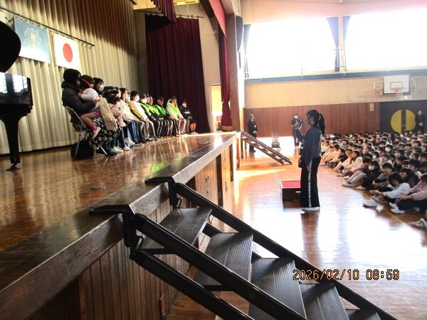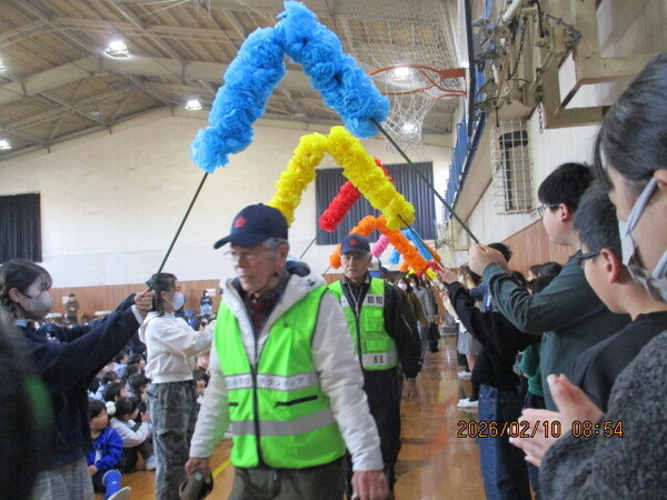 今日は体育館で「感謝の会」が行われました。日ごろから子どもたちの安全を見守っていただいている交通指導員、防犯ボランティアの皆様、また、子どもたちに楽しい本を読んでいただいている図書ボランティアの皆様に来ていただきました。花のアーチをくぐって入場すると子どもたちからは大きな拍手がわきました。児童会長の素晴らしいあいさつの後、計画委員の子どもたちから感謝状が渡されました。最後は、子どもたちが「ありがとうの花」を合唱しました。1年生は振付もしてくれましたね。参加していただいた皆様から「やっぱり歌を聞くと感動しますね」との声をいただきました。本日参加できなかった方を含め、その他にもたくさんの方が子どもたちを温かく見守ってくれています。いつも本当にありがとうございます。これからもどうぞよろしくお願いします。