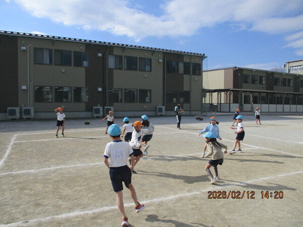 2月12日(木) 白熱!2年生の「鬼遊び」です。