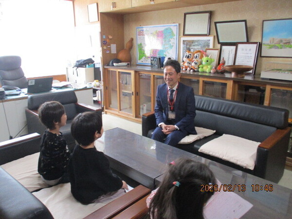 2月13日(金) 1年生はいろいろな先生にインタビューしています。今日はハートのハンバーグです。